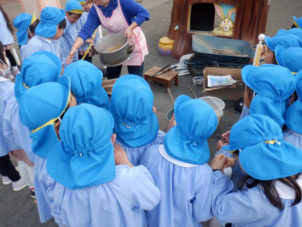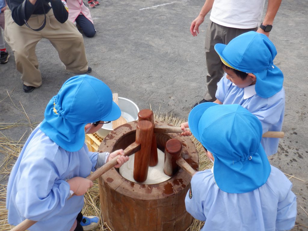 おもちができあがると拍手が起こり、思わず「たべた~い」と口にする子どもたちに笑ってしまいました😋