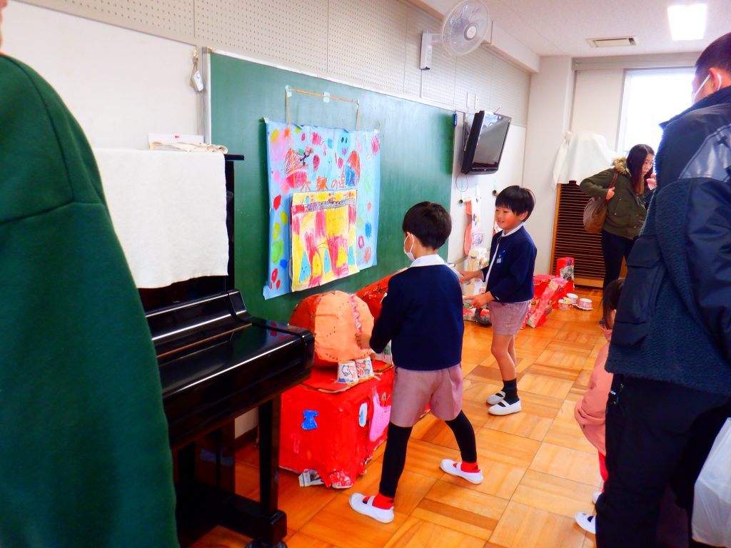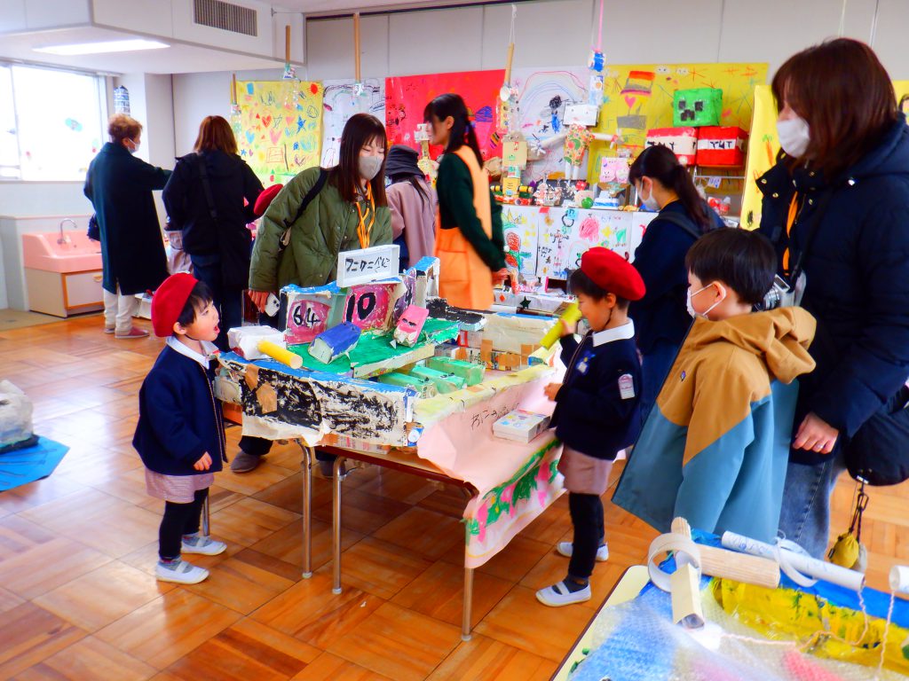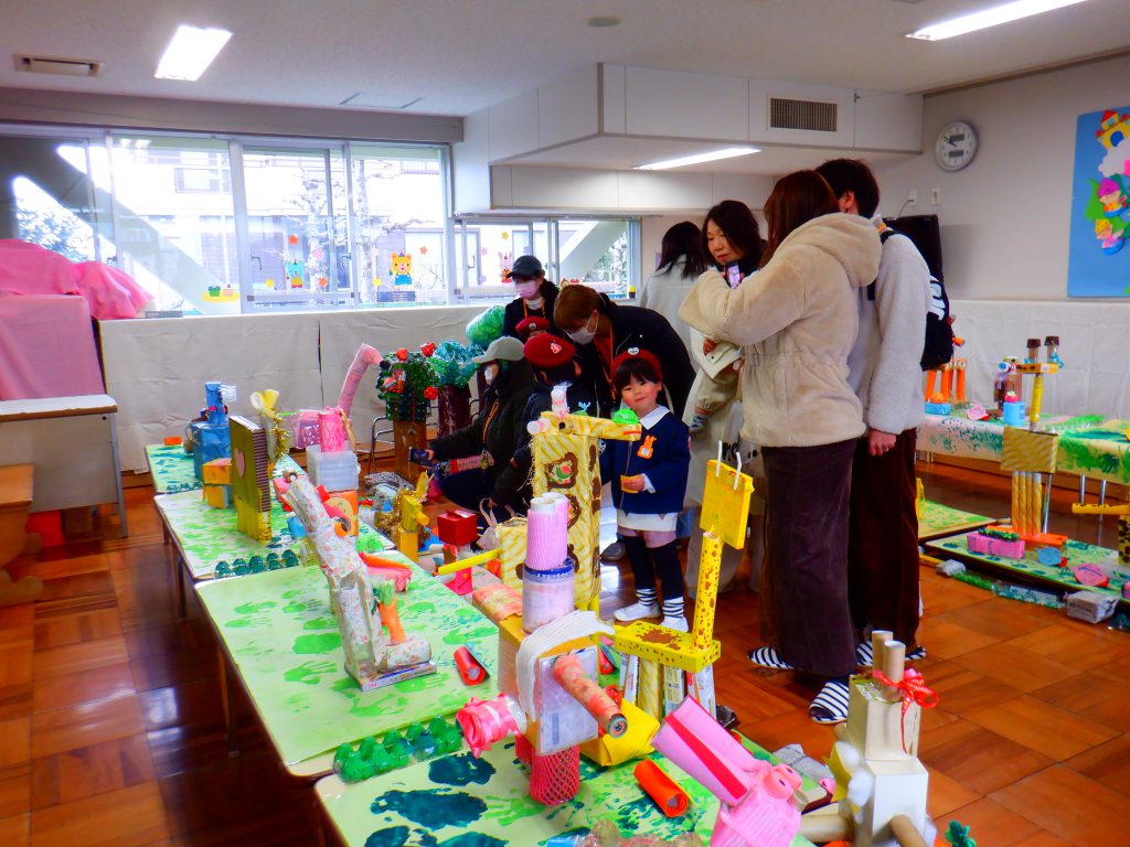 おうちの方と手をつなぎ、自分の作品を嬉しそうに紹介している姿は、自信満々の笑顔で大きな成長を感じられました。